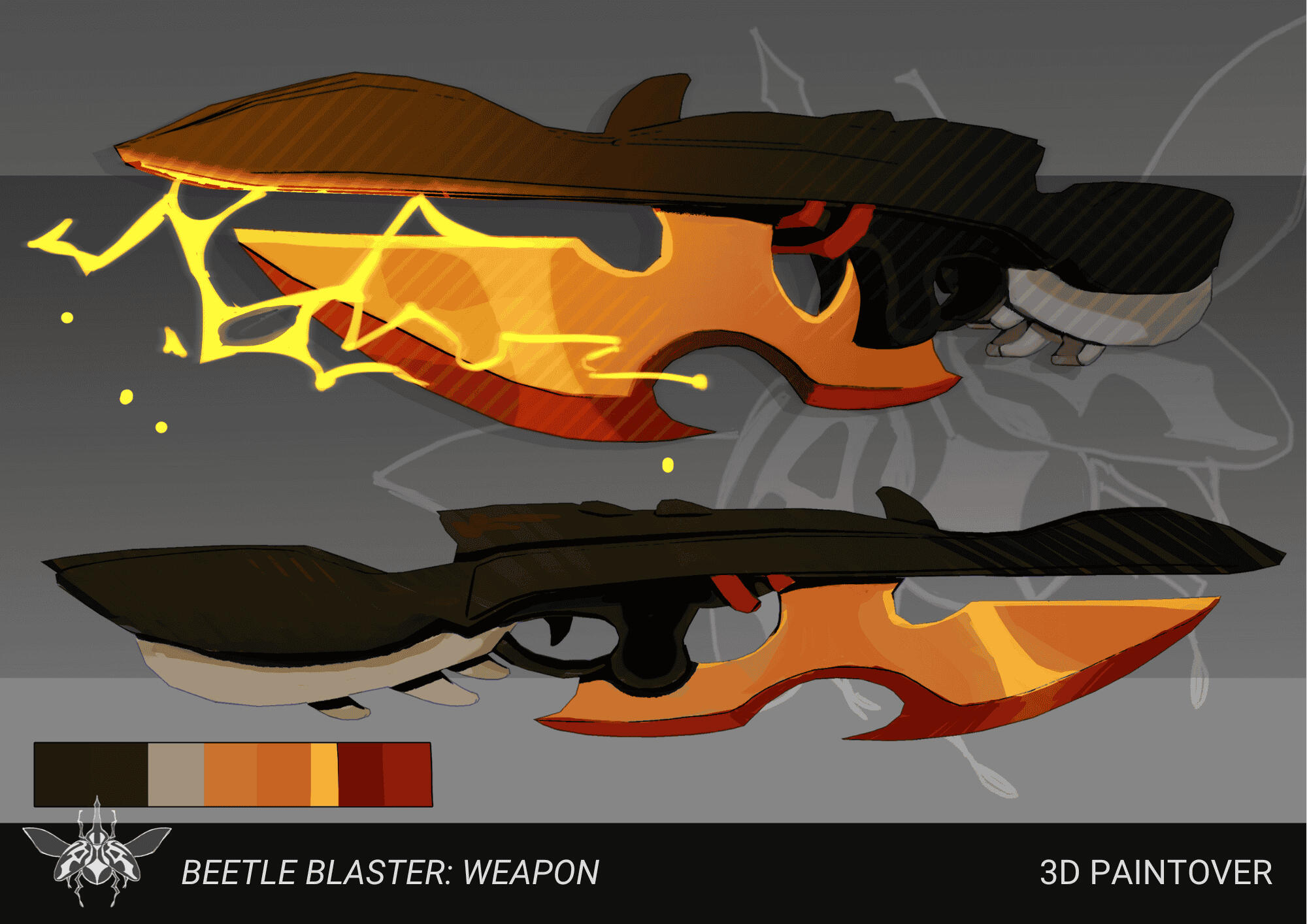 Third-person hero shooter character and weapon concepts.